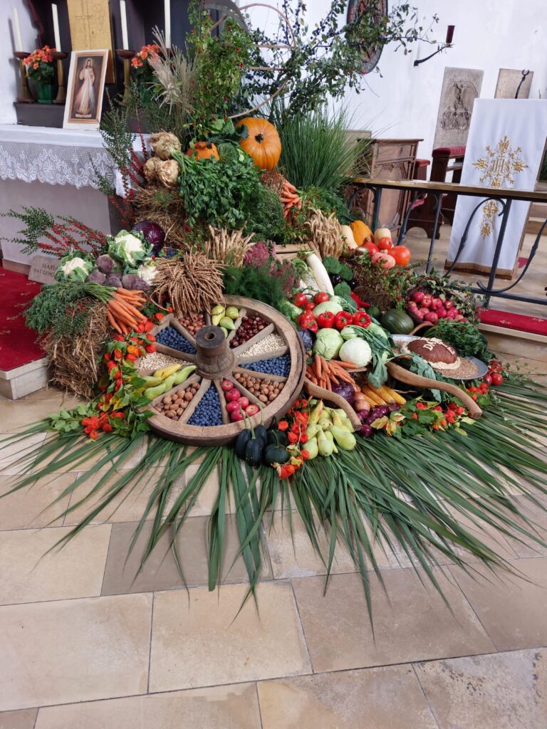 Der Obst- und Gartenbauverein Offingen hat auch dieses Jahr wieder in der Kirche den Erntedankaltar für den Erntedankgottesdienst gestaltet und die Erntekrone aufgezogen. Vielen Dank unseren Helferinnen und Helfern, die die bereitgestellten Früchte zu einem schönen Ensemble zusammengestellt haben. Ein herzliches Dankeschön auch an die Bäckerei Mayr für das Erntedankbrot.